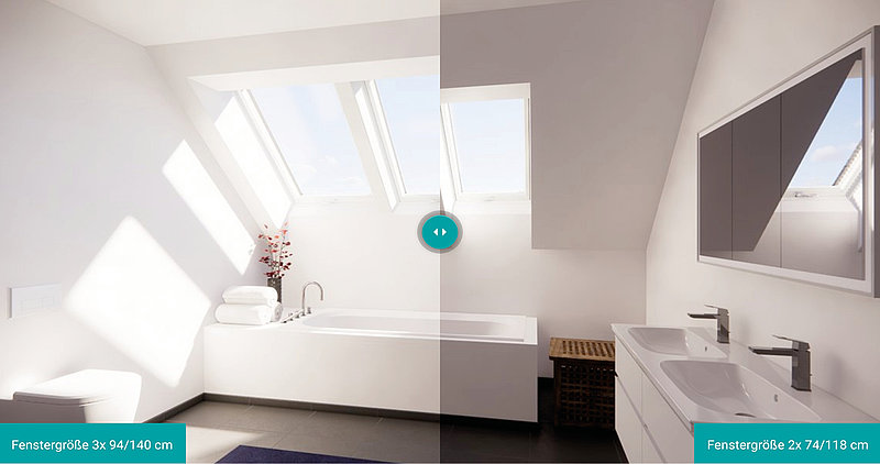 Erleben Sie Veränderung direkt am Bildschirm! Wir zeigen Ihnen, wie unterschiedliche Dachfenster-Größen und verschiedene Einbausituationen Ihre Wohnräume unter dem Dach in Wohlfühloasen verwandeln.